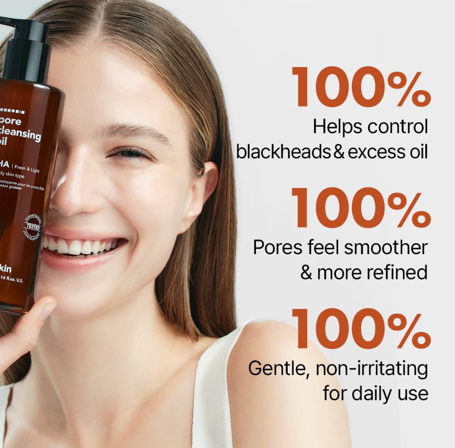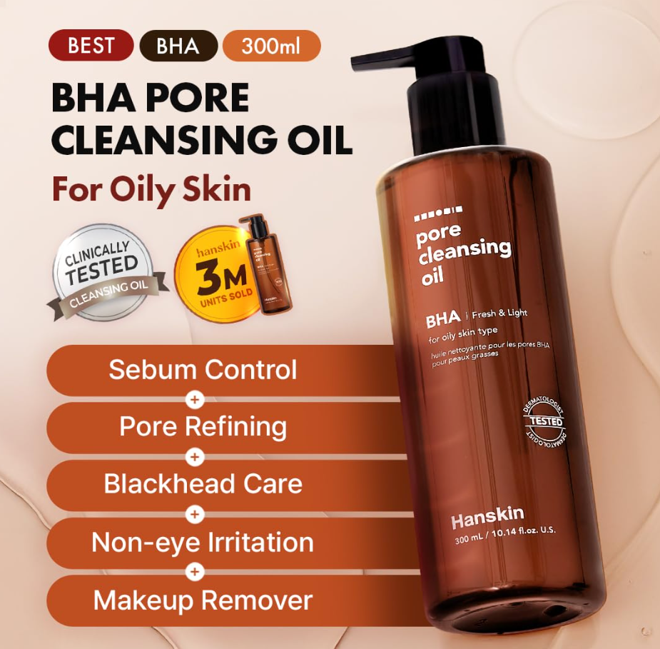 Hanskin BHA Pore Cleansing Oil, Gentle Blackhead Cleanser and Makeup Remover for Combination and Oily Skin, Korean Skincare [BHA/10.14 oz]