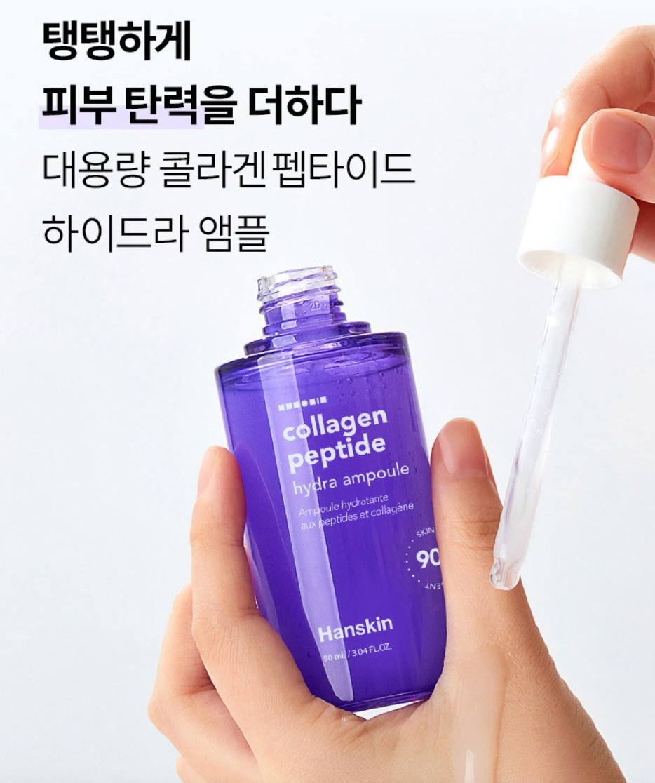 Hanskin Collagen Peptide Hydra Ampoule (90ml). Made with 80% Collagen Extract and 20% Peptide. Advanced Anti-Aging Formula to Repair Skin from Wrinkles and Fine Lines on Face and Neck Area.